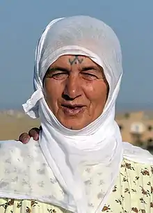 Jacques de Morgan a également observé le tatouage des femmes kurdes en 1895 et a mentionné que les femmes âgées avaient la plupart des tatouages et étaient parfois tatouées sur tout le corps. Lorsque les hommes étaient tatoués, c'était principalement localisé sur leurs mains et rarement sur le visage. Henry Field a également observé ce phénomène lorsqu'il a visité les provinces du Kurdistan et de Kermanshah en Iran, dans les années 1950[5].