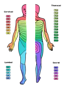 En médecine, l'étude des dermatomes permet de déterminer les zones de lésion de la moelle épinière ou du tronc cérébral. Le déficit sensitif au niveau de certains dermatomes évoque la lésion d'un niveau médullaire déterminé.