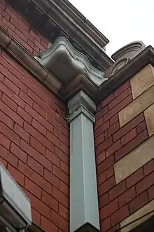 Descente tronquée laissant s’échapper l’eau de pluie.