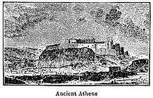 Athènes est tombée une première fois en septembre 480 av. J.-C.[3]. Le petit nombre d'Athéniens qui s'étaient barricadés sur l'Acropole fut finalement vaincu, et Xerxès ordonna alors d'incendier Athènes[4]. L'Acropole a été rasée et le Vieux Temple d'Athéna ainsi que le Parthénon plus ancien ont été détruits[5] :
