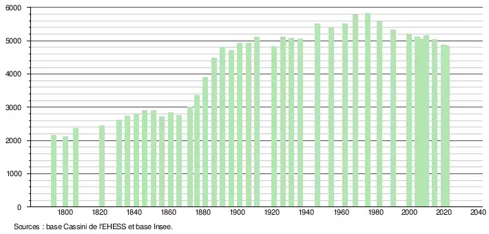 - Population municipale légale en vigueur au 1er janvier 2024, millésimée 2021, définie dans les limites territoriales en vigueur au 1er janvier 2023, date de référence statistique : 1er janvier 2021.
