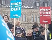 En 2013, la dette étudiante s'élevait à 3 milliards d'euros, et 12,5 % des étudiants avaient recours à un emprunt pour financer leurs études[47]. De 2006 à 2012, les frais de scolarité ont augmenté de 50 % dans les écoles de commerce. Ce nombre augmente beaucoup, alors que le coût de la vie est une des raisons principales de l'endettement[48].
