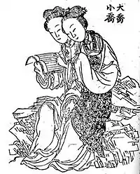 Da Qiao a épousé le seigneur de guerre Sun Ce, qui a établi les fondements du Royaume de Wu dans la période des Trois Royaumes de Chine, tandis que Xiao Qiao a été mariée au général Zhou Yu, qui a servi Sun Ce puis son successeur Sun Quan.