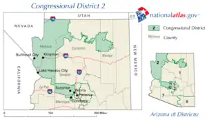 - Le 1er district congressionnel d'Arizona devient le 2e district du Congrès de l'Arizona.