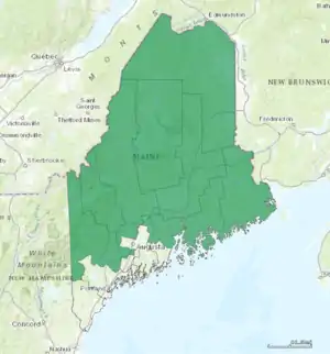 Les limites du district sont ouvertes à un réexamen à la lumière des changements de population révélés par le recensement décennal des États-Unis. Jusqu'en 2011, la Constitution du Maine prévoyait que l'État redistribuait les districts congressionnels sur la base des données du recensement tous les dix ans à partir de 1983, ce qui aurait signifié que l'État devait ensuite envisager un redécoupage en 2013. Cependant, une action en justice fédérale a été déposée en mars 2011 a conduit à exiger que le Maine accélère son processus de redécoupage[3]. Les législateurs de l'État du Maine ont approuvé de nouvelles limites le 27 septembre 2011[4].