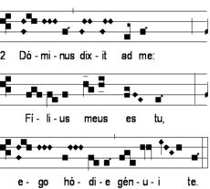 - La communion Cantabo Domino (iii D.P.P.) semble avoir subi dans l'édition vaticane un effondrement d'un ton de son introduction, le graduel dominicain en donne une version beaucoup plus plausible et conforme au type modal.