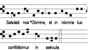 Il apparaît notamment dans la mélodie-type ci-dessous, très fréquente dans l'antiphonaire.