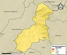 Le retrait-gonflement des sols argileux est susceptible d'engendrer des dommages importants aux bâtiments en cas d’alternance de périodes de sécheresse et de pluie. 99,8 % de la superficie communale est en aléa moyen ou fort (44,5 % au niveau départemental et 48,5 % au niveau national). Sur les 34 bâtiments dénombrés sur la commune en 2019, 34 sont en aléa moyen ou fort, soit 100 %, à comparer aux 75 % au niveau départemental et 54 % au niveau national. Une cartographie de l'exposition du territoire national au retrait gonflement des sols argileux est disponible sur le site du BRGM[34],[Carte 3].