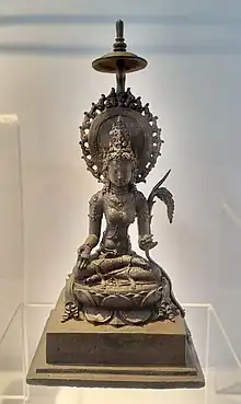 Statuette de bronze javanaise du IXe siècle ou Xe siècle représentant Dewi Sri, conservée au Musée Sonobudoyo à Yogyakarta.