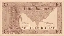 Billet de 10 rupiah de 1952 représentant une statue de Dewi Sri