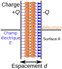 Les diélectriques sont utiles dans les condensateurs. Dans le cas, très simple, du condensateur plan, on peut rapprocher les plaques sans risque de contact ou de claquage. On insère ainsi des couches de diélectriques dans les condensateurs industriels, ce qui permet d'augmenter la capacité en diminuant l'encombrement.