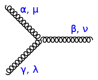 Le fantôme de Faddeev-Popov (en) est tracé avec une ligne de points[18] :