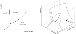 Dans le cas des changements d'état (gaz-liquide-solide) d'un corps pur, les résultats sont parfois présentés sous la forme d'un diagramme en trois dimensions, les axes étant la pression P, le volume V occupé par le système et la température T.