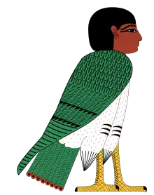 Le concept égyptien ancien de l'âme était composé de neuf parties distinctes. Parmi celles-ci figure le Ba, que l'on traduit communément par « âme ». On pensait que l'âme Ba représentait la psyché ou la personnalité d'une personne et qu'elle continuait à vivre après sa mort, possédant la capacité de passer du plan physique au plan spirituel. L'âme ba est traditionnellement représentée dans l'art égyptien ancien sous la forme d'une Jabiru d'Afrique à tête humaine[1].