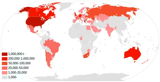 - Carte réalisée en 2006 avec les données de la page en anglais.