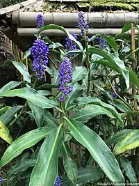 Dichorisandra thyrsiflora, le gingembre bleu, est une espèce de plantes à fleurs de la famille des Commelinaceae. Elle ressemble au gingembre dans sa manière de pousser et par son habitat, mais est plutôt liée en réalité aux misères (le genre Tradescantia). Cette plante est originaire des forêts tropicales d'Amérique centrale et du Sud, en particulier dans la végétation de la forêt atlantique au Brésil, dans les États de Bahia, Minas Gerais et Rio de Janeiro. Elle est cultivée pour ses jolies tiges tachées et son grand feuillage brillant qui se maintient horizontalement, surmonté de fleurs bleues voyantes.