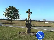 Ce calvaire encadré par la Vierge et saint Jean qui reposent sur une traverse, sépare la croix d'un large socle, et se trouve à l'entrée du village de Diebolsheim sur la route de Bindernheim. Ce genre de calvaire est beaucoup moins nombreux dans le Ried que de simples croix rurales qui se trouvent plutôt au sud de Strasbourg, dans le Ried.