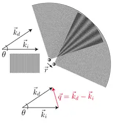 Les ondes diffusées par plusieurs atomes interfèrent. L'onde mesurée selon un angle , auquel correspond un vecteur d'onde , résulte de ces interférences. Elles se calculent par les différences de marche des ondes et s'expriment en fonction du vecteur de diffusion :