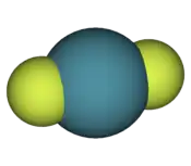 La molécule RnF2 modélisée a une conformation linéaire et une longueur de liaison Rn-F de 208 pm[4].