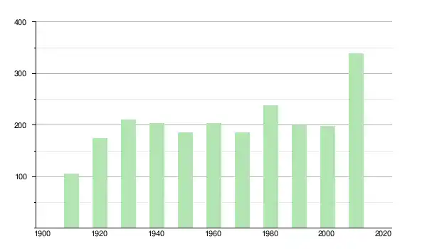 | 1950 | 186 | ▼ −8,82 % | |