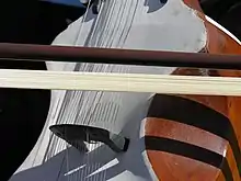 Il y a quatre cordes principales pouvant être frottées, dont l'une sert de corde de jeu principale et l'autre ne sert que de bourdon ; sous les frettes passent 15 cordes sympathiques, dont la majorité sont fixées le long du manche sur un support externe, le reste passant sur un chevalet plat en haut du manche et étant fixées sur la tête.
