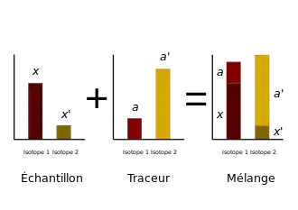 L'utilisation de traceurs isotopiques en chimie analytique est le précurseur de la dilution isotopique. Cette méthode a été développée au début du XXe siècle par George de Hevesy, et lui a valu le prix Nobel de chimie en 1943. L'une des premières utilisations de la méthode des traceurs a été la détermination de la solubilité des sulfite et chromate de plomb en 1913 par Hevesy et Friedrich Adolf Paneth[2]. Dans les années 1930, le biochimiste David Rittenberg a commencé à utiliser le marquage isotopique en biochimie, ce qui a permis des études détaillées du métabolisme cellulaire. Dans les années 1940, la dilution isotopique est appliquée au dosage élémentaire du carbone, de l'oxygène, de l'azote et du soufre[3].