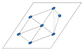 La dimension d'un graphe biparti complet , pour , vaut 3 : sur la figure, on voit comment placer sommets sur un même cercle et les 2 sommets restants sur l'axe de ce cercle. peut quant à lui se tracer avec un losange dans un plan.