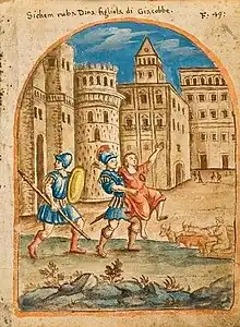 Quand Jacob revient avec ses femmes et ses enfants au pays de Canaan après des années passées chez son oncle Laban, il achète un terrain (Genèse 33,19) dans la région de Sichem (Shechem en hébreu), pour s'y installer. Dinah est alors remarquée par Shechem, le fils du chef de la ville. Celui-ci l'enlève et la viole, tombe ensuite amoureux de la jeune fille qui resta chez lui, et demande à son père d'obtenir la main de Dinah auprès de Jacob.