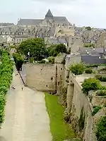 En 1357, lors de la guerre de succession du duché de Bretagne, Bertrand Du Guesclin et son frère Olivier défendent avec succès la ville assiégée par les troupes anglaises et les Bretons fidèles à Jean de Montfort. Il affronte Thomas de Canterbury[alpha 2] en combat singulier et en sort vainqueur. En 1364, après plusieurs tentatives infructueuses, le duc Jean IV parvient à reprendre le contrôle de la ville et y fait construire la Tour ducale.