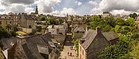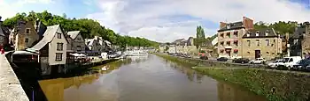 ![]() ![]() ![]() ![]() Basilique Saint-Sauveur, port de Dinan le long de la Rance depuis le belvédère du jardin anglais, remparts depuis le château, panorama de la vieille ville et de la rue du Jerzual du haut de la porte médiévale du Jerzual. |