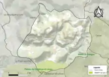 L'occupation des sols de la commune, telle qu'elle ressort de la base de données européenne d’occupation biophysique des sols Corine Land Cover (CLC), est marquée par l'importance des forêts et milieux semi-naturels (76,6 % en 2018), néanmoins en diminution par rapport à 1990 (84 %). La répartition détaillée en 2018 est la suivante : forêts (44,6 %), milieux à végétation arbustive et/ou herbacée (32 %), zones agricoles hétérogènes (20,2 %), prairies (3,2 %)[16]. L'évolution de l’occupation des sols de la commune et de ses infrastructures peut être observée sur les différentes représentations cartographiques du territoire : la carte de Cassini (XVIIIe siècle), la carte d'état-major (1820-1866) et les cartes ou photos aériennes de l'IGN pour la période actuelle (1950 à aujourd'hui)[Carte 1].