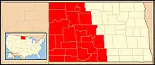 Le diocèse comprend vingt-trois comtés de la partie occidentale du Dakota du Nord : Adams, Billings, Bowman, Burke, Burleigh, Divide, Dunn, Emmons, Golden Valley, Grant, Hettinger, McKenzie, McLean, Mercer, Morton, Mountrail, Oliver, Renville, Sioux, Slope, Stark, Ward et Williams.