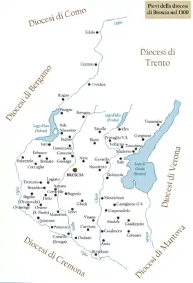 Pieves du diocèse de Brescia (it) en 1300. (voir aussi Pieve)