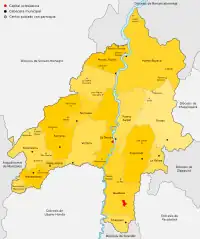 Il est situé sur des portions de 4 départements de la Colombie. Il comprend les municipalités de La Dorada, Manzanares, Marquetalia, Norcasia, Pensilvania, Samaná, Victoria et le district de Montebonito de la commune de Marulanda du département de Caldas ; il gère les municipalités de Caparrapí, Chaguaní, Guaduas, La Palma, Puerto Salgar et Yacopí du département de Cundinamarca ; il possède les municipalités de Puerto Triunfo et les districts de La Danta et San Miguel de la commune de Sonsón du département d'Antioquia et la municipalité de Puerto Boyacá du département de Boyacá.