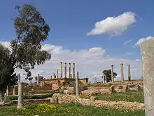 Parmi les vestiges d'édifices, l'on reconnaît une ancienne basilique chrétienne à trois nefs avec un baptistère, comme siège épiscopal.