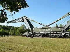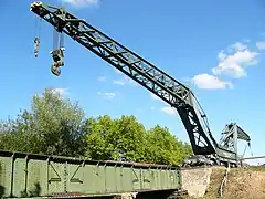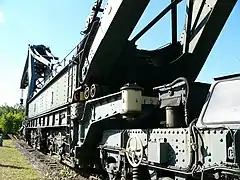 Une des flèches est de construction soudée, tandis que l'autre est rivetée. Cela est dû à un incident survenu pendant une intervention sur la ligne de Paris à Bâle au mois d', lors de la pose d'un tablier sur la future autoroute A4 à Champigny-sur-Marne où le Diplodocus bascule et se retrouve couché sur le flanc[3],[4]. Le Diplodocus n'est plus utilisé depuis les années 1980[2].