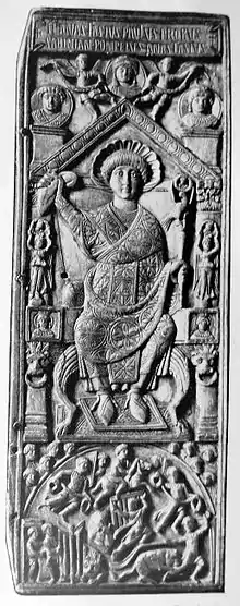- Diptyque de Probianus, vicaire impérial - sculpté à Rome - conservé à Berlin[2].