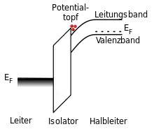 Si on applique une tension à une électrode (positive dans le cas d'un semi-conducteur p-dopé, négative dans le cas d'un semi-conducteur n), il se forme sous la surface isolante du semi-conducteur un domaine qui agit comme un puits de potentiel. Là, la concentration en porteurs de charge majoritaires est minimum.