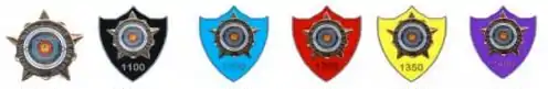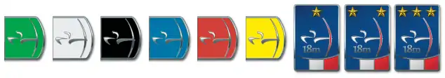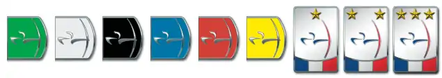 En fonction des scores réalisés la couleur et/ou le motif des badges et écussons diffère[6].