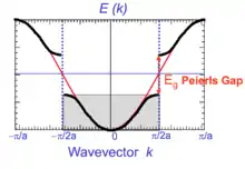 Le théorème de Peierls, découvert dans les années 1930, énonce qu'un système périodique mono-dimensionnel avec un électron par ion est instable. Il peut être démontré en utilisant un modèle simple de particule dans réseau à une dimension. La périodicité du cristal provoque l'apparition de bandes interdites au bord de la zone de Brillouin (ce que l'on retrouve dans le modèle de Kronig-Penney, qui aide à mieux comprendre l'apparition des bandes interdites dans les semi-conducteurs). Si chaque ion met en commun un électron, alors la bande ne sera qu'à moitié occupée, et tout se passe comme si la période du réseau avait doublé. De nouvelles bandes interdites apparaissent alors sur le diagramme pour les multiples de .