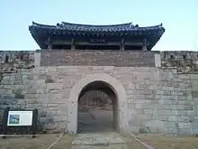 • L'attraction touristique principale est Gasan-sanseong, une forteresse bâtie autour d'une montagne, le Gasan (901 m), à la suite des invasions japonaises (1592) puis mandchoues (1636). Le Gasan offre une vue générale de la ville de Daegu. À son sommet, il y a un grand rocher plat, le Gasanbawi. La forteresse elle-même est constituée de trois murailles. Le mur intérieur, long de km, a été construit en 1640 et en 1648. Il a été complété par un mur extérieur de km en 1701 puis par un mur central (600 m) en 1741[4].