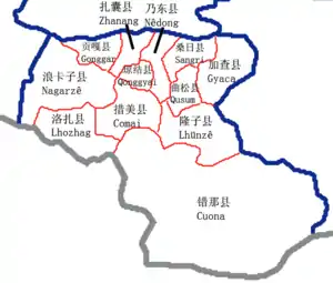 | Nǎidōng qū 乃东区 né dong chü སྣེ་གདོང་ཆུས | |