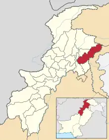 Le district en rouge au sein de la province de Khyber Pakhtunkhwa. | |