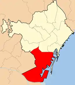 | Nota *: Montjuïc et Zona Franca ne sont pas des quartiers, mais ils font partie de la division de la mairie en quartiers. | ||||||||||