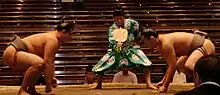 Jūryō (十両), est la seconde division, comprenant 28 lutteurs[1]. Son nom signifie « dix ryō », soit la somme que les lutteurs recevaient généralement à une certaine époque. Le nom officiel est en fait jūmaime (十枚目), ce qui signifie « dixième place », et peut être entendu ou lu dans les communications officielles. Mais l'usage, y compris dans le monde-même du sumo, est d'appeler cette division jūryō. Les lutteurs de jūryō et makuuchi sont appelés sekitori. Les lutteurs de jūryō, comme ceux de makuuchi, reçoivent un salaire mensuel ainsi que des bénéfices complémentaires liés à leur statut de sekitori. Les lutteurs des divisions inférieures sont considérés comme en formation et reçoivent une indemnité réduite au lieu d'un salaire.