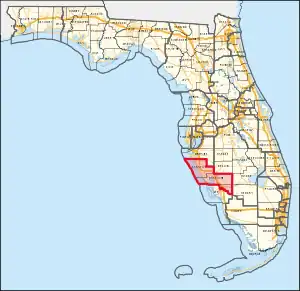 De 2003 à 2013, il était situé dans le sud de la Floride et était un district à majorité afro-américaine. Il comprenait les parties sud du Comté de Broward et les parties orientales du Comté de Miami-Dade. Le district comprenait Pembroke Pines, Hollywood, Miramar et North Miami. La majeure partie de ce district est maintenant le 24e district.