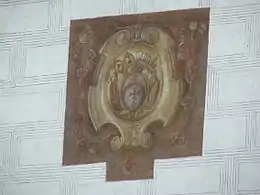 ![]() Blason de l'Ordre hospitalier des croisés à l'étoile rouge sur la façade du château. |