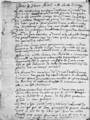 Le registre paroissial est tenu avant la Révolution française de 1789 par les curés catholiques des paroisses et recense de manière chronologique tous les actes de baptême, de mariage et de sépulture de la population de la paroisse. Les généalogistes le désignent parfois sous le terme de registre BMS[5]. Les actes sont bien souvent peu fournis en information sur l'individu. Ainsi pour un acte de sépulture, on trouvera la date de l'acte, les noms et prénoms de l'individu, son âge approximatif et les témoins, on comprend qu'il est dans ce cas assez difficile de retracer quand et où il est né et les noms de ses parents. Pour un acte de naissance on aura les noms des parents, du parrain et de la marraine de l'enfant, parfois des liens de parenté unissant le parrain et la marraine à l'enfant (oncle, grand-père, etc.).