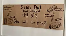 Alternativement, les invités parient sur l'article que le bébé choisira au doljabi (jeu de divination) pour gagner un prix.