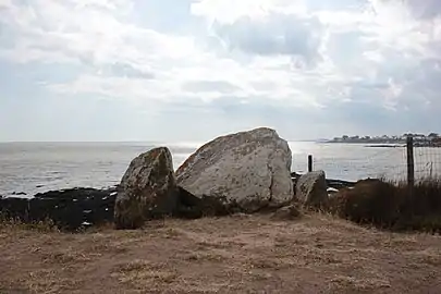 Ce dolmen est d'un type difficile à préciser. Il ne subsiste qu'une partie de la chambre quadrangulaire, le couloir d'accès a disparu, victime du recul de la falaise depuis l'époque néolithique[2].